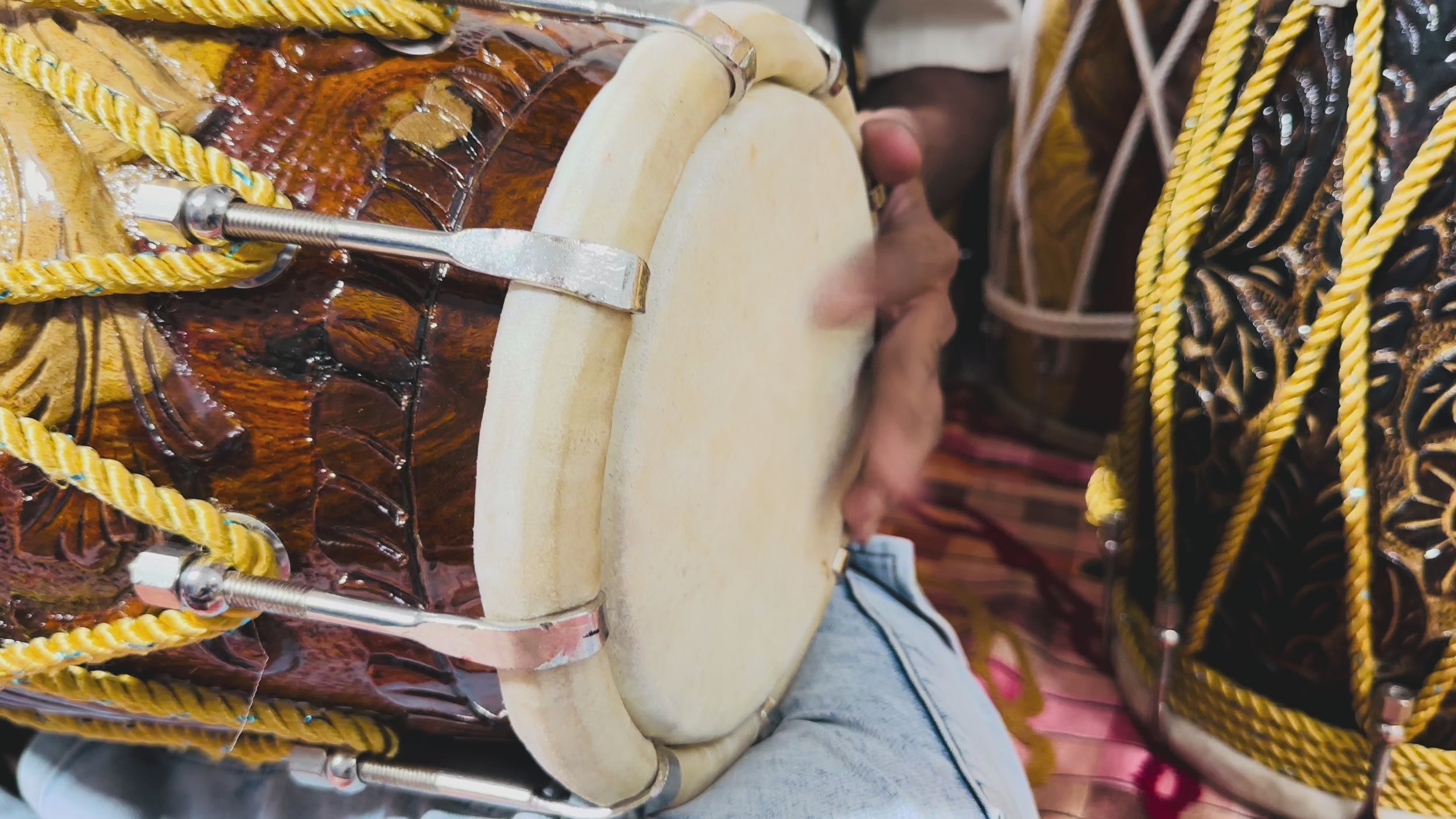 Brand new and handmade. Each dholak has unique natural wood patterns and carving details, reflecting the individuality of artisan work.